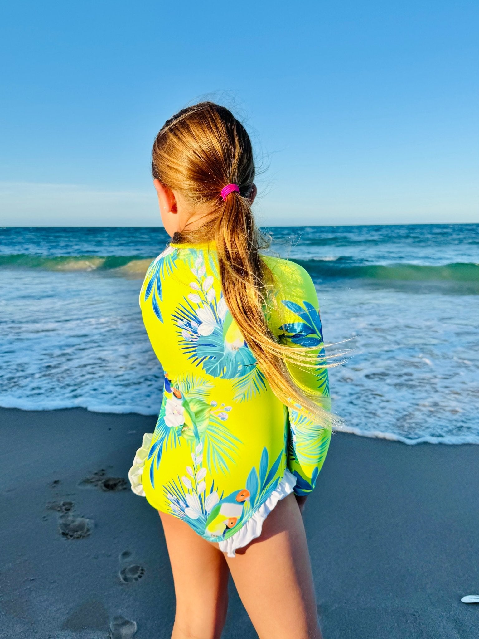 Girls Long Sleeve Swimsuit - Finch Fiesta | Neon Yellow