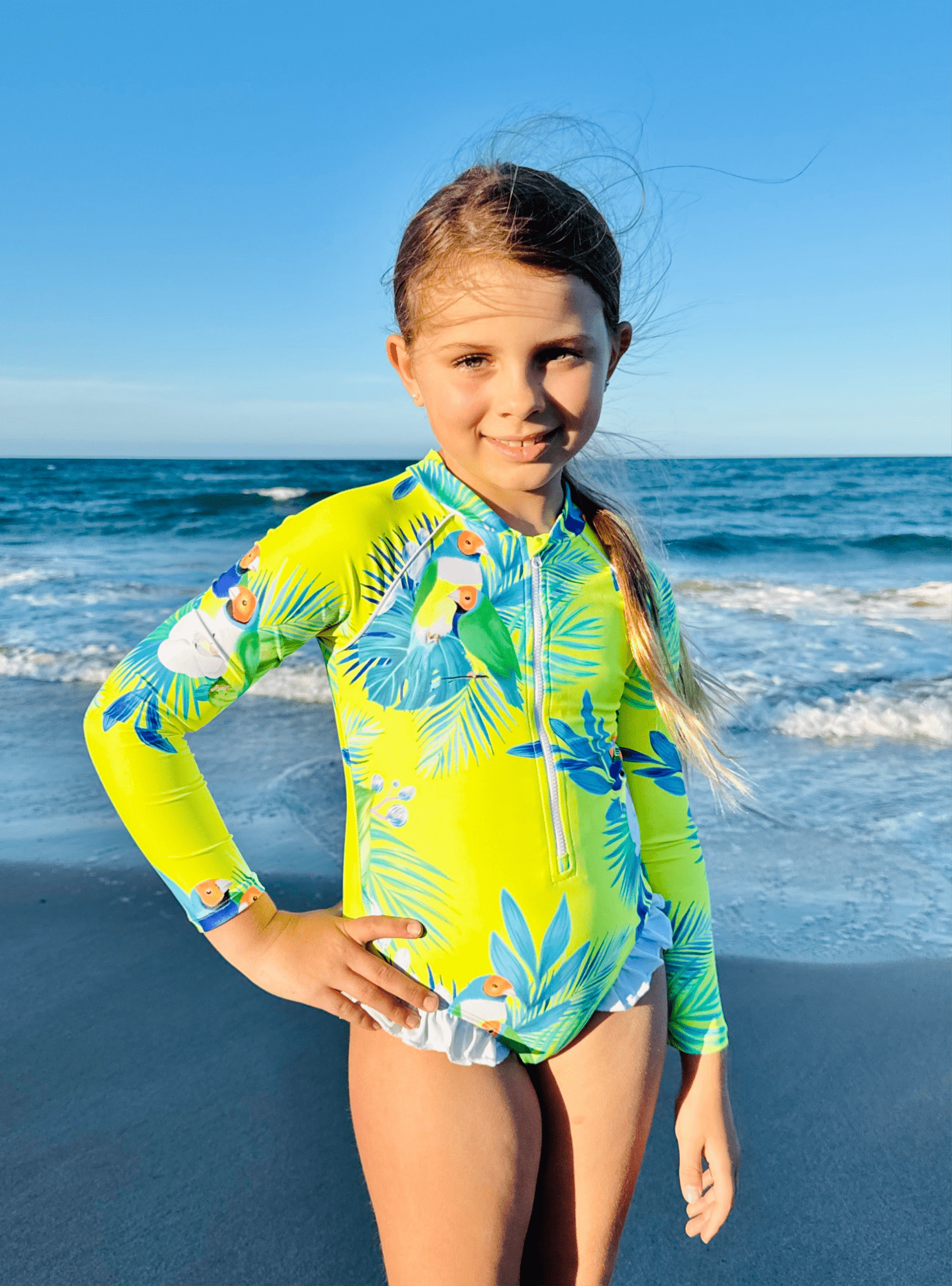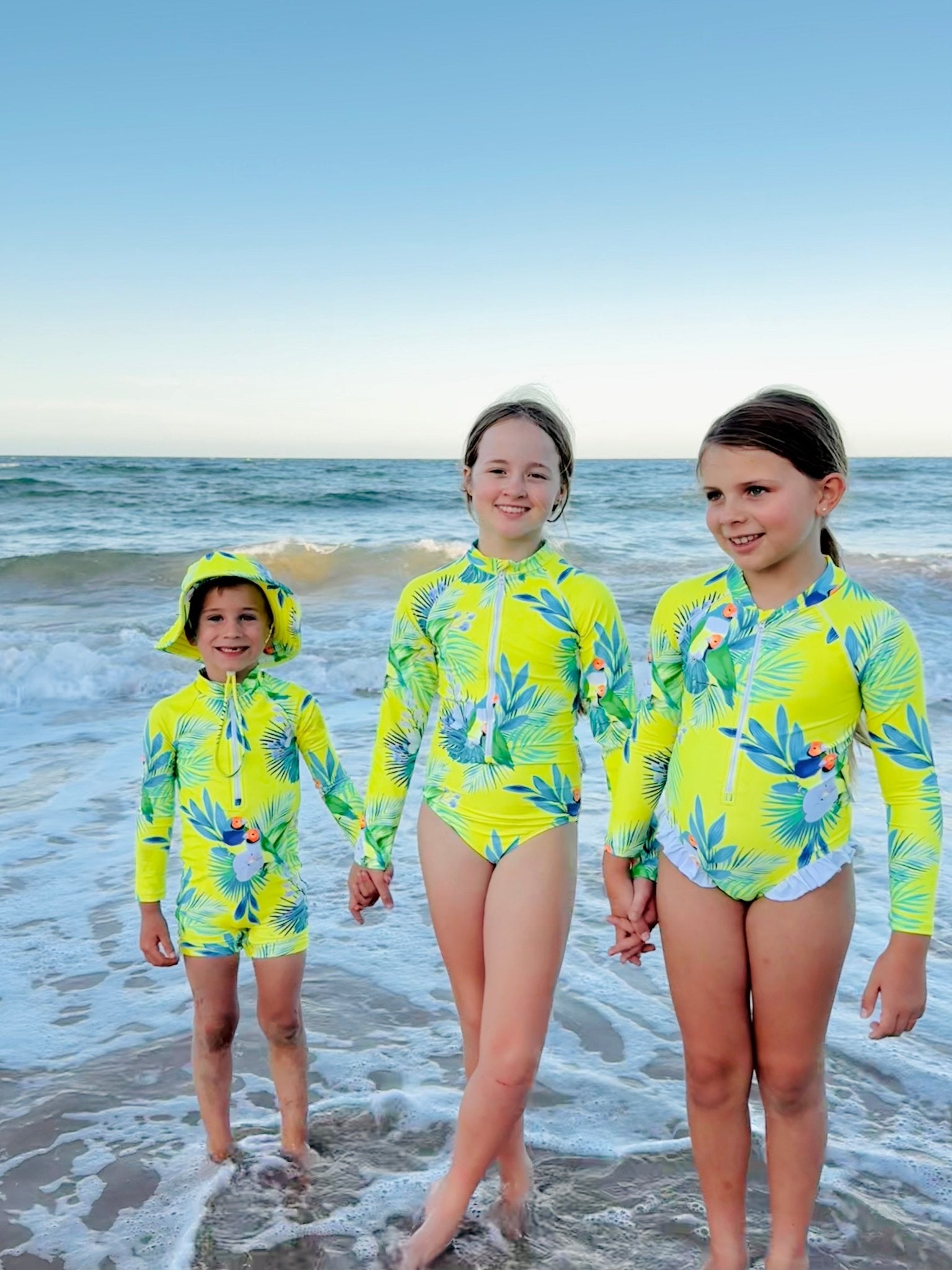✨ Beach-luxe at its best: playful style, comfort, and serious sun protection for growing girls.