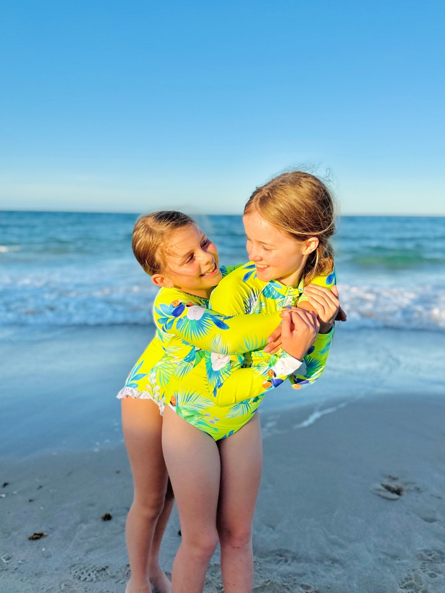 Bright, bold and sun-safe, our Finch Fiesta swimsuit is designed for tweens and teens who want to stand out while staying protected. This vibrant neon yellow one-piece offers full coverage across the back, chest and arms, making it the go-to choice for long summer days by the pool or at the beach.